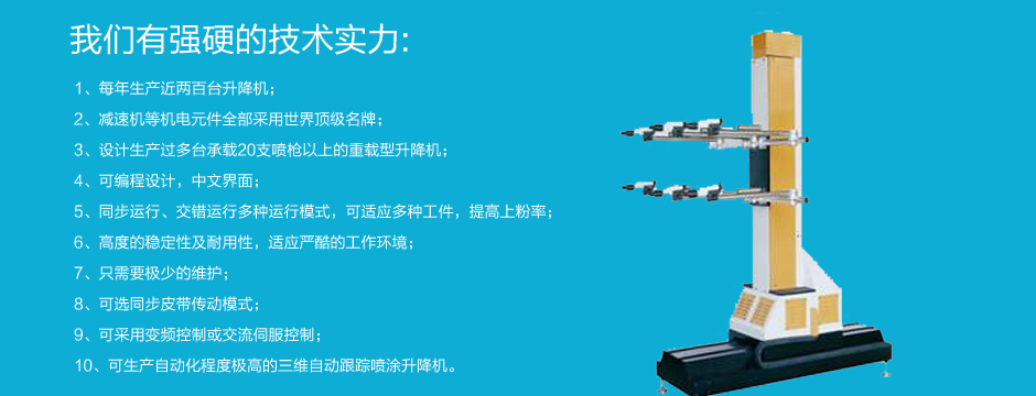 力恒機電設備有限公司是一家以生產涂裝設備為主要業務的公司.主營行業:靜電噴粉設備;熱潔環(huán)保爐;(碳化爐);數字智能升降機(往復機);氟碳噴涂設備;小旋風二級回收噴房;大旋風二級回收噴房;魔術快速換色噴房;背包式單極回收噴房;水簾噴漆柜;全自動噴粉設備...